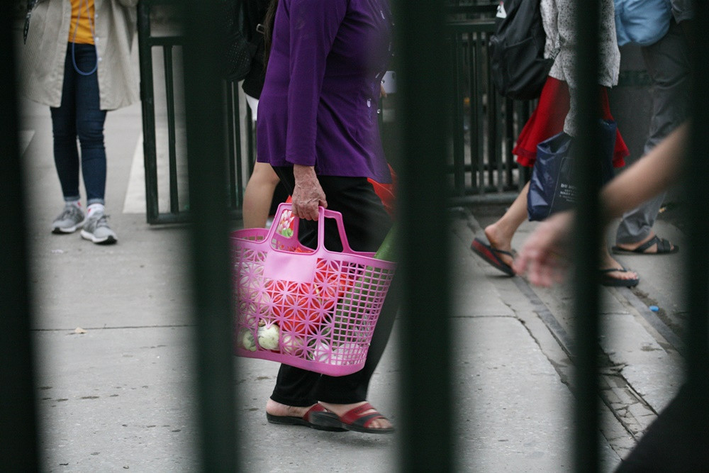Người dân ái ngại thiếu niên bám dai nên đành phải rút ra các tờ tiền mệnh giá từ 1 nghìn đồng, hoặc 5 - 10 nghìn đồng bỏ vào mũ cậu ta.