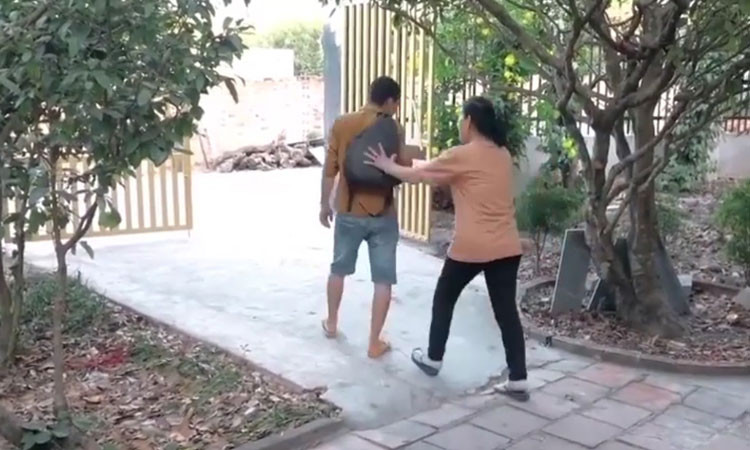 Khoảnh khắc chị vợ đuổi chồng ra khỏi nhà trong đêm Hà Nội lạnh căm căm. Anh chồng chẳng còn cách nào khác là kéo va li ra khỏi nhà.