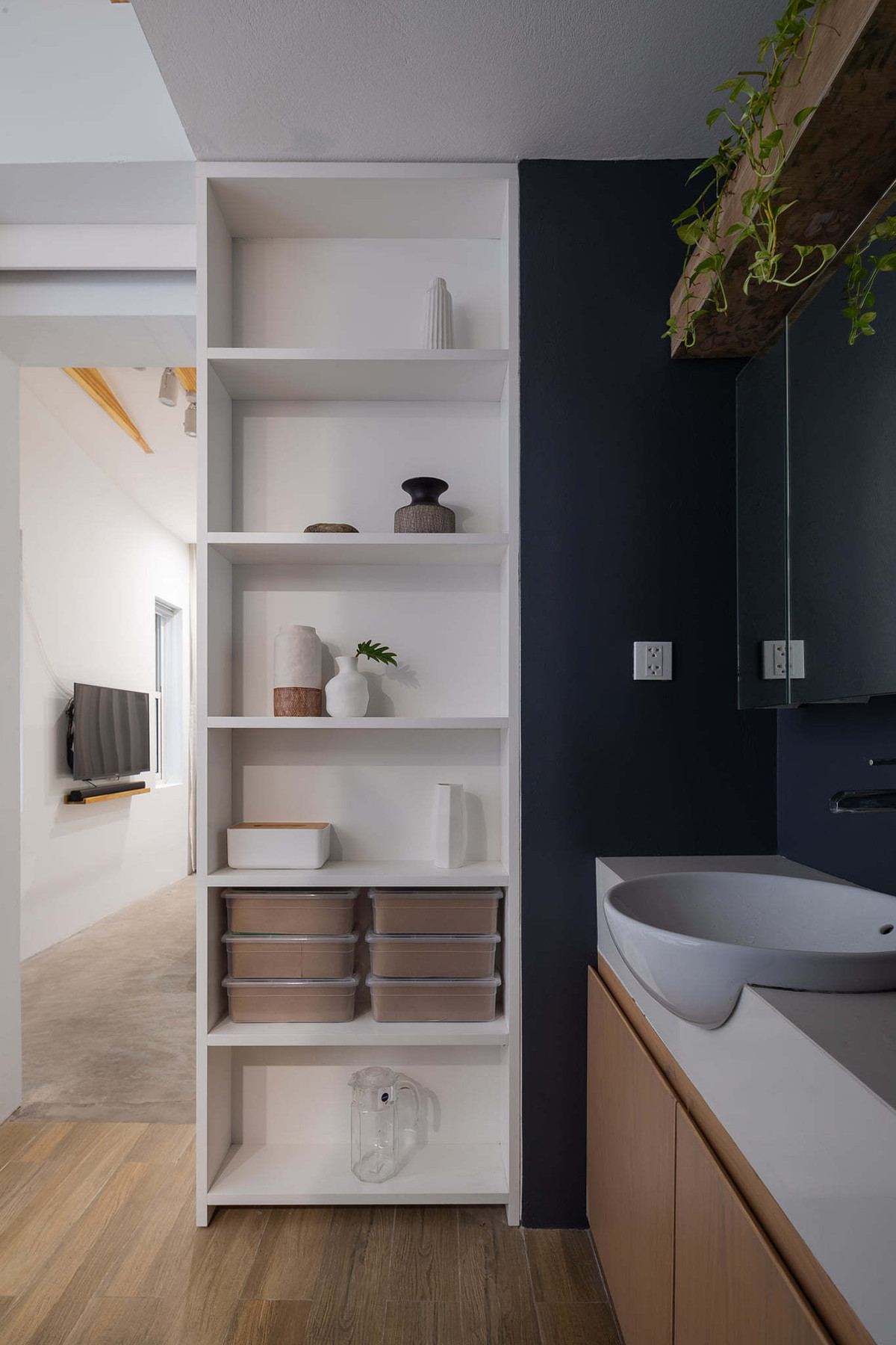 Lối tiếp cận từ hẻm vào không gian bên trong qua hành lang như một khoảng đệm, vừa có tác dụng đảm bảo sự riêng tư, vừa tạo cảm giác không gian thoáng đãng, rộng mở hơn.