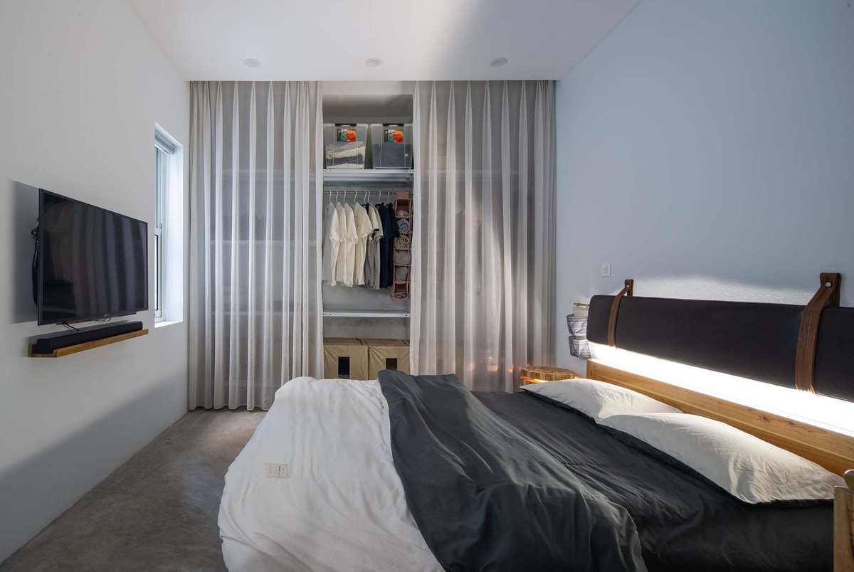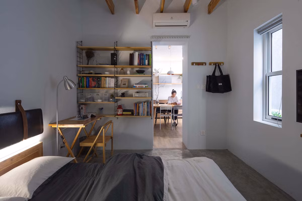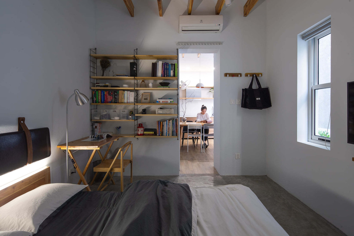 Khoảng đệm giúp phòng ngủ ngập tràn ánh sáng tươi, không bị tối tăm như các công trình phố khác.