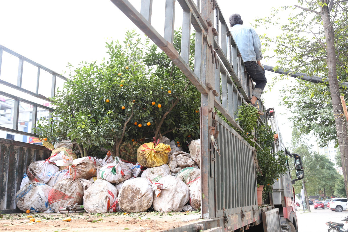 Những gốc quất được thanh lý giá rẻ vẫn không có người mua, tiểu thương phải thuê xe chở về lại Hưng Yên.