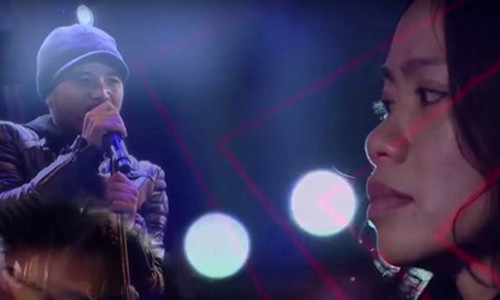 | Nam diễn viên hài một tay cầm hoa giúp Nhã Phương một tay nắm chặt tay nữ diễn viên. (Ảnh: Lao Động) |