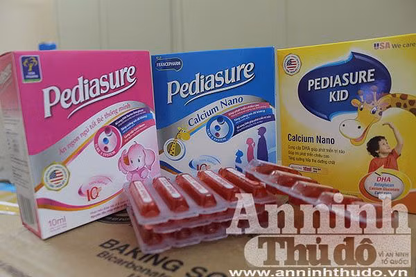 6000 sản phẩm thực phẩm chức năng dành cho trẻ em bị Đội Quản lý thị trường số 6, Chi cục Quản lý thị trường Hà Nội thu giữ tại chợ thuốc Hapulico vì có dấu hiệu xâm phạm quyền nhãn hiệu Pediasure của Abbott.
