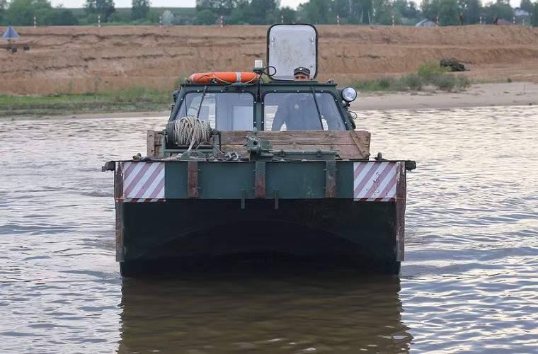 Trong ảnh là một binh sĩ Nga đang vận hành ca-nô công binh sau khi kết thúc một đợt huấn luyện.