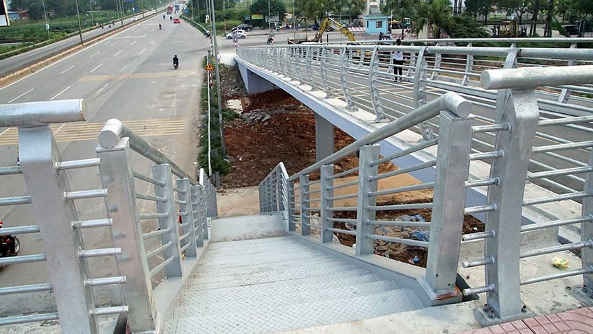 Thành cầu được lắp đặt tay vịn và lan can bằng thép không rỉ.