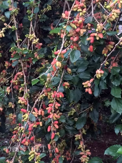 Một năm cây dâu cho trái khoảng 3 vụ, mỗi vụ cho khoảng gần 20kg trái. Còn ra trái lai rai thì có quanh năm.