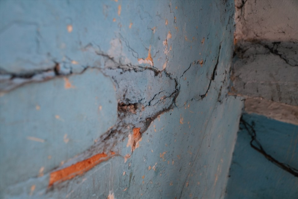 Các vết nứt lớn xuất hiện khắp mọi nơi, từ chân tường cho đến khu vực lan can hành lang.