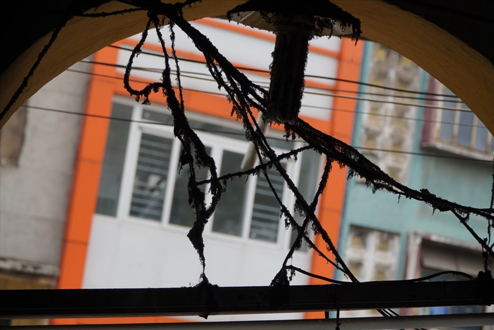 Hệ thống đường dẫn điện được lắp đặt nổi, sau thời dài dài sử dụng bị mạng nhện quấn dày đặc, đổi màu.