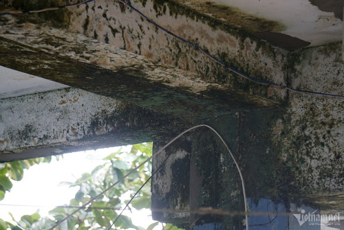 Ghi nhận của PV. VietNamNet ngày 26/12, các bức tường chung cư bị bong tróc, loang lổ, là nơi cây cối bén rễ mọc um tùm phía sau các dãy nhà.