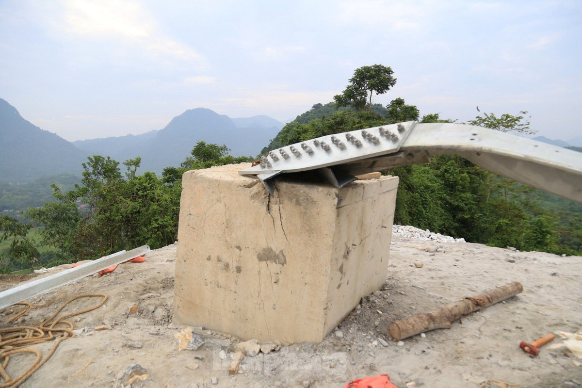 Ngay cả trụ cũng xuất hiện các vết nứt, vỡ. Hiện trường không thấy dây cáp điện nhưng vẫn còn các thiết bị, chi tiết để kéo dây gắn lên cột. Chính quyền xã và người dân cho hay ngay sau khi cột điện bị đổ, các cơ quan chức năng đã phong tỏa hiện trường để kiểm tra. Hiện nay, hiện trường đã được cho người ra vào. Tại công trường, những lao động thời vụ, không mặc đồng phục của đơn vị thi công được huy động để cắt, tháo dỡ cột điện bị đổ. Công nhân cắt nhỏ các cấu kiện bằng máy.