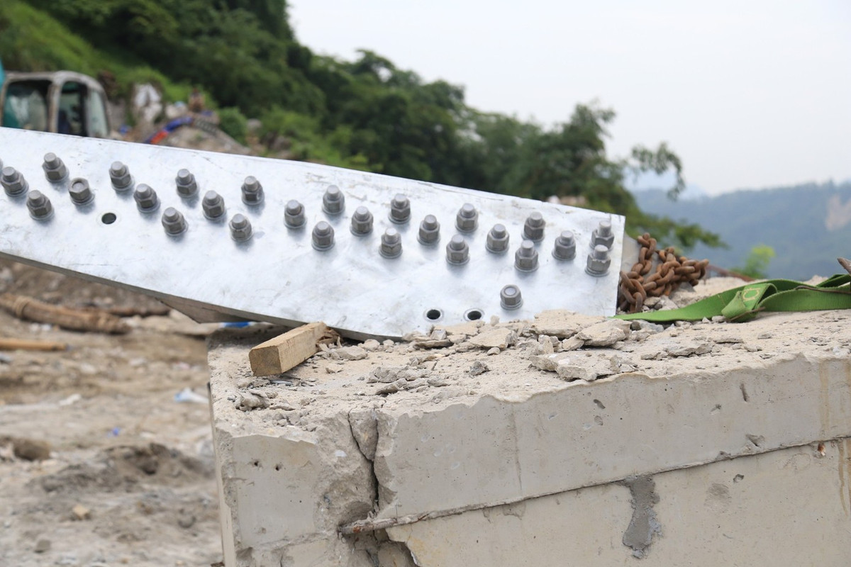 Cận cảnh cột điện tại dự án đường dây 500kV Lào Cai - Vĩnh Yên đổ sập