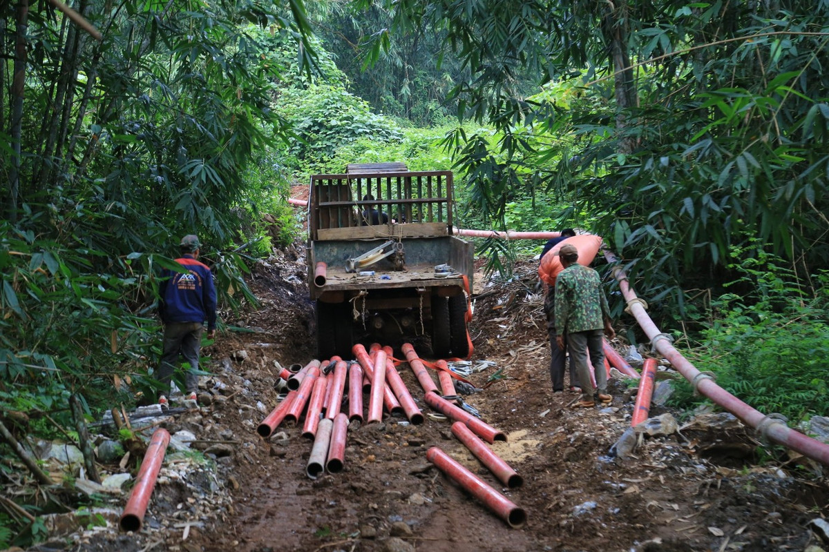 Rồi chuyển khỏi hiện trường. Phía dưới, các ống dẫn xi măng đang được lắp đặt để chuẩn bị cho việc thi công trở lại.