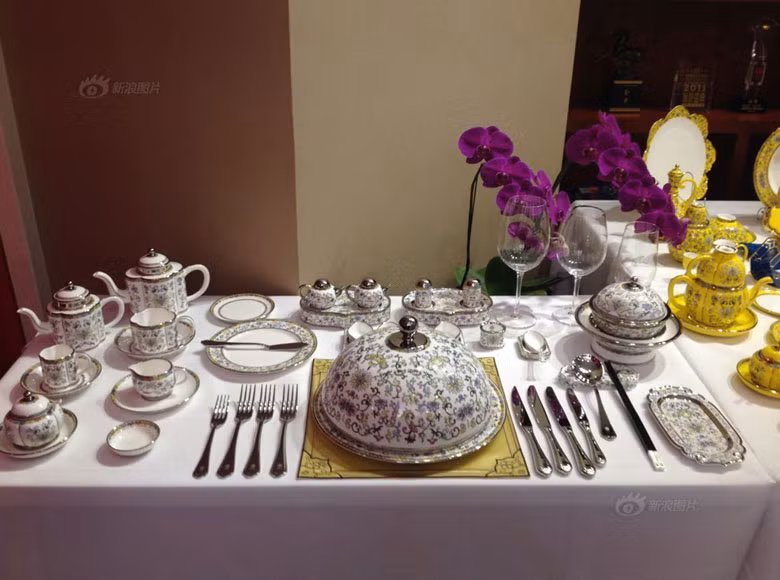 Bàn chính thiết đãi các nguyên thủ được bày biện 68 vật dụng mạ vàng. Bàn tiệc phụ dành cho cấp Bộ trưởng trở xuống được bày biện bộ 63 vạt dụng bằng bạc.