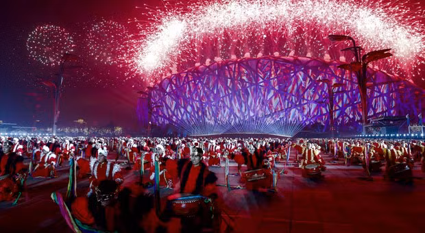 Water Cube được trang trí bằng hiệu ứng ánh sáng bởi 2.000 thiết bị chiếu sáng. Đại yến tiệc bao gồm màn ca múa nhạc với hiệu ứng ánh sáng đặc sắc và màn pháo hoa đầy ấn tượng.