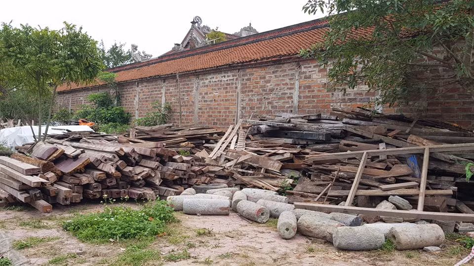 Số gỗ để tu bổ công trình được để bên cạnh chùa.