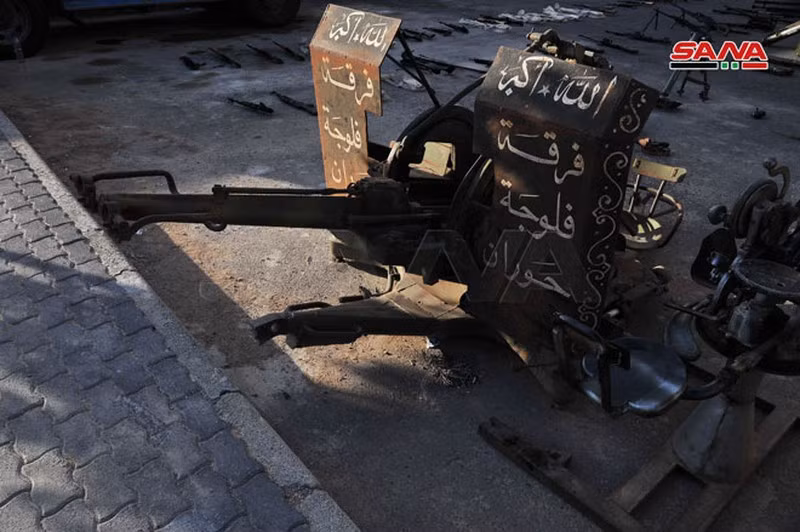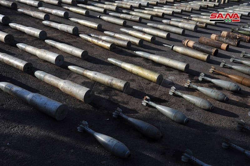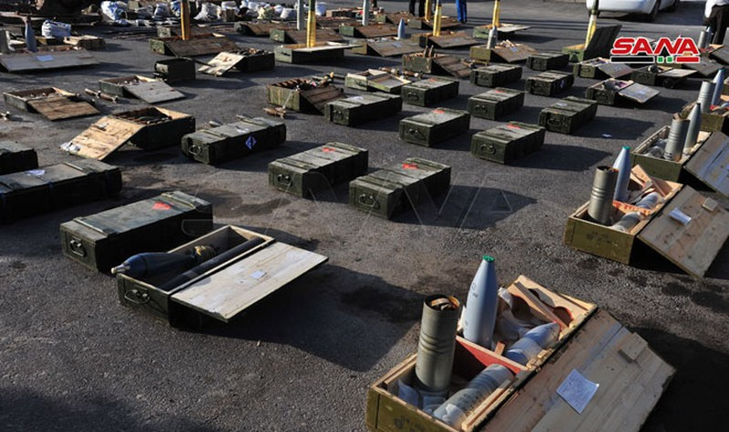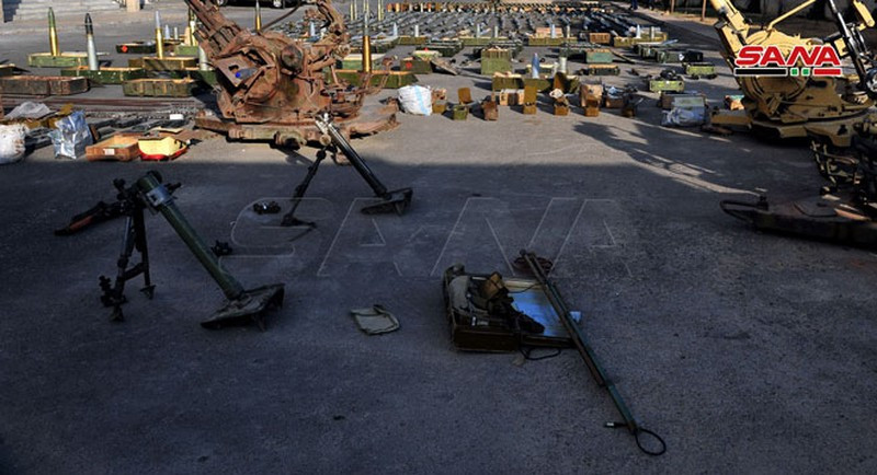 Trong số những vũ khí được quân đội Syria tìm thấy có súng máy hạng trung và hạng nặng, súng trường, súng bắn tỉa, súng phóng lựu vác vai (RPG), đạn pháo cối, xe tăng và lựu đạn.