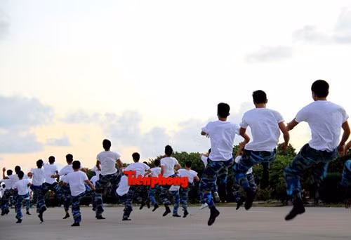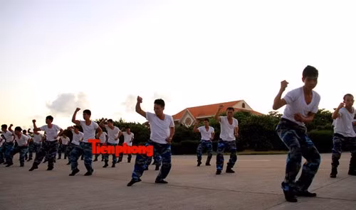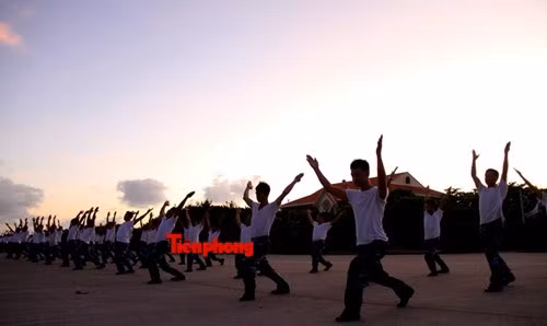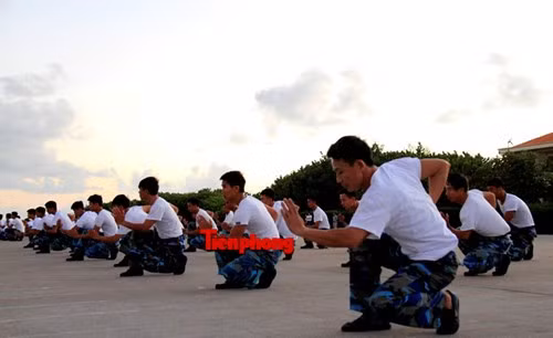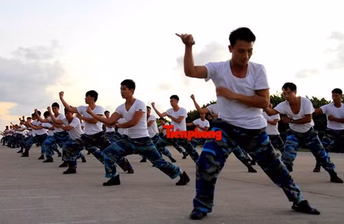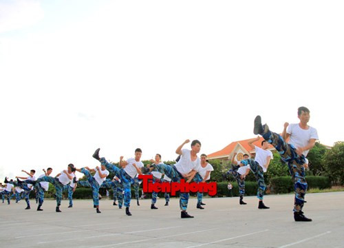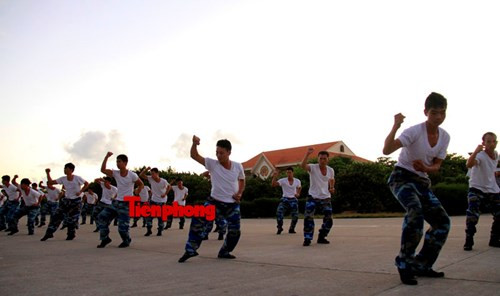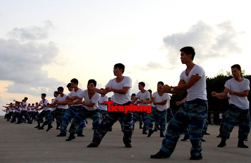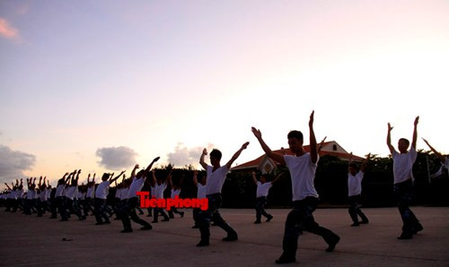 Đúng 5h mỗi ngày, theo hiệu lệnh, các chiến sĩ trên đảo Trường Sa lại ra sân tập thể dục, luyện võ để nâng cao sức khỏe.