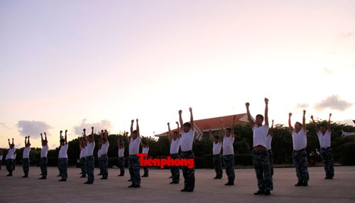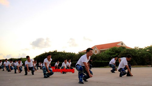 Các động tác tập thể dục buổi sáng của lính Trường Sa.