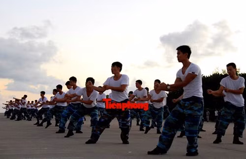 Các chiến sĩ Trường Sa tập võ nâng cao thể lực, rèn luyện sức khỏe, tinh thần trước khi bước vào một ngày luyện tập, công tác.
