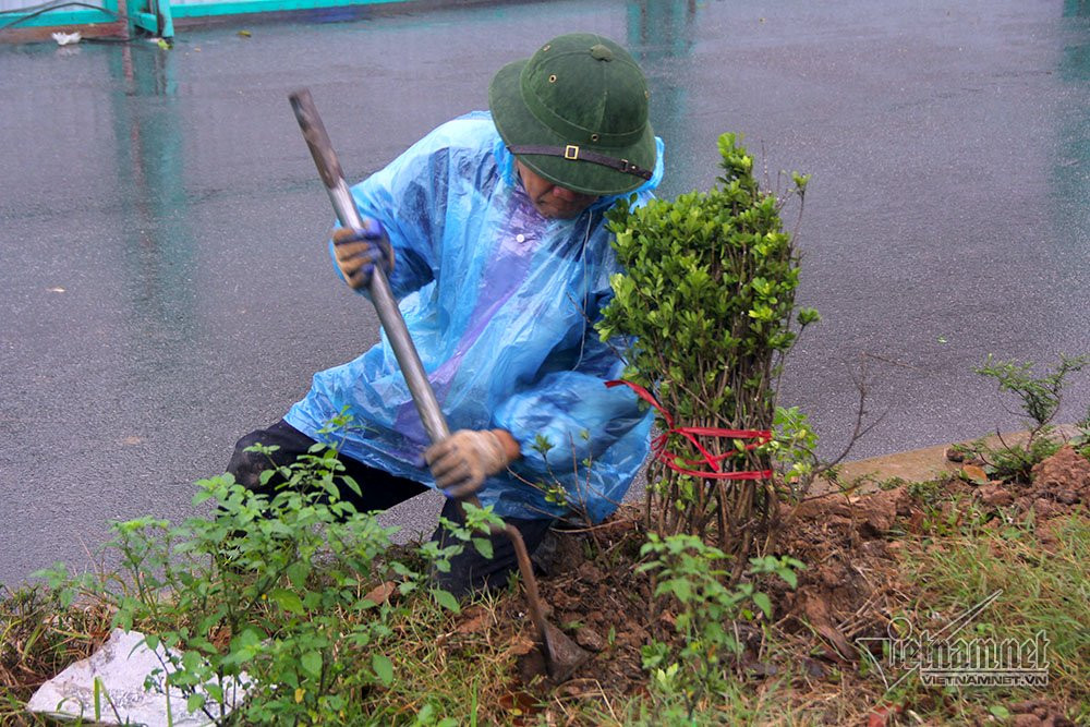 Ở các đoạn chưa được rào chắn, cỏ và cây trên dải phân cách đang được di dời đi nơi khác.