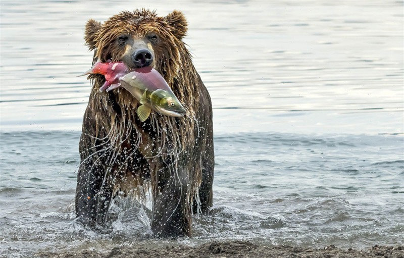 Nhiếp ảnh gia người Italia - Giuseppe Damico vừa ghi lại được khoảnh khắc gấu nâu săn cá hồi ở một hồi nước tại bán đảo Kamchatka, Nga.