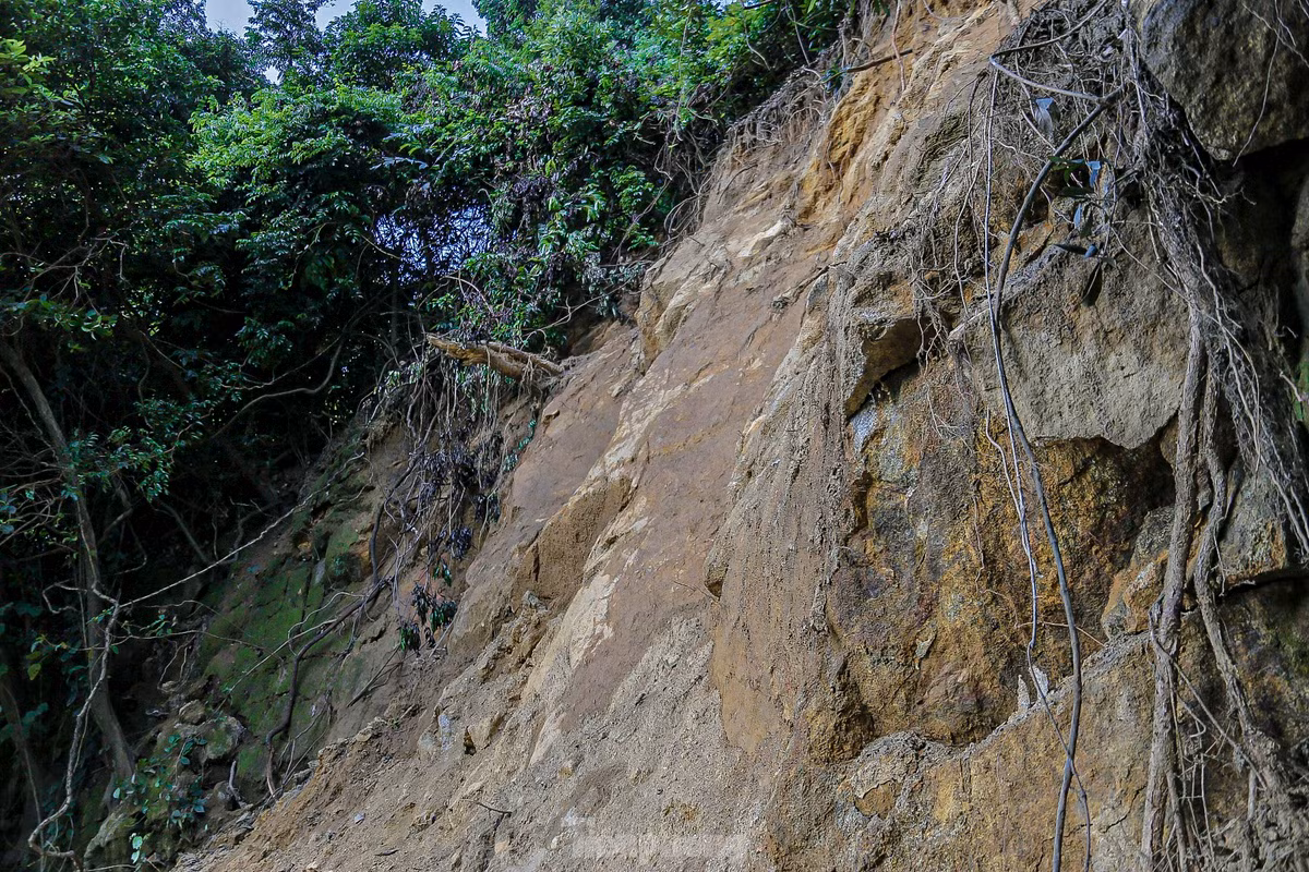 Dọc tuyến đường trên đèo Hải Vân xuất hiện hàng chục điểm có nguy cơ sạt lở cao. Chỉ cần vài trận mưa lớn đất đá từ các quả đồi có thể đổ xuống bất cứ lúc nào.