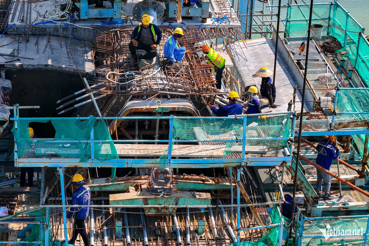 Trên công trường, hàng trăm kỹ sư, công nhân đang thi công liên tục để hoàn thành các hạng mục còn lại, chuẩn bị cho giai đoạn hợp long.