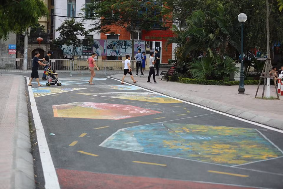 (Kiến Thức) - Phố đi bộ Trịnh Công Sơn dài 900m từ ngõ 612 Lạc Long Quân đến đoạn giao với dốc ngã ba đê Âu Cơ sẽ chính thức khai mạc tối nay 11/5. Tuyến phố được hoàn thành với sự góp mặt của nhiều họa sĩ yêu thích Hà Nội.