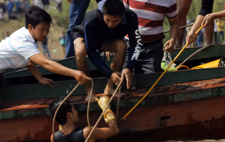 (Kiến Thức) - Gần 20 thợ liên tục thay nhau lặn xuống đáy sông Hồng lạnh cóng để tìm thi thể nạn nhân bị BS Cát Tường phi tang.