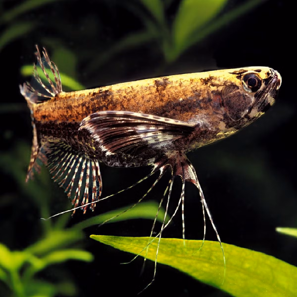 Loài cá mang tên khoa học Pantodon buchholzi là một trong những sinh vật độc đáo nhất của các hệ sinh thái nước ngọt châu Phi. Phân bố chủ yếu tại lưu vực sông Congo và vùng đầm lầy Tây Phi, cá bướm châu Phi nổi bật với hình dáng kỳ lạ: thân dẹt, đầu rộng, đặc biệt là cặp vây ngực lớn xòe ngang như đôi cánh bướm. Khi nhìn từ trên xuống, chúng trông giống hệt một chiếc lá khô đang trôi bồng bềnh trên mặt nước - một dạng ngụy trang hoàn hảo trước kẻ săn mồi và con mồi.
