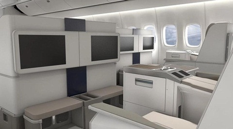 Ghế da có thể kéo thành giường để ngủ trong hành trình, trên máy bay có quầy bar riêng, màn hình phẳng, kết nối wifi.. Máy bay được dùng cho chuyến đi là Boeing 777-200LR.