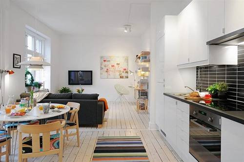 Lấy màu trắng làm chủ đạo để làm sáng lên căn hộ, không quá cầu kỳ về màu sắc nhưng những chi tiết trang trí nhỏ cũng đã được chú ý tỉ mỉ. Chẳng hạn như thảm nhà, tranh treo tường, gối ném đều có màu sắc nổi bật để tạo điểm nhấn, phá vỡ sự đơn điệu.