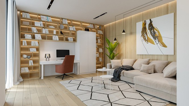 Căn hộ chung cư đẹp mỹ mãn nhờ nội thất gỗ biến tấu