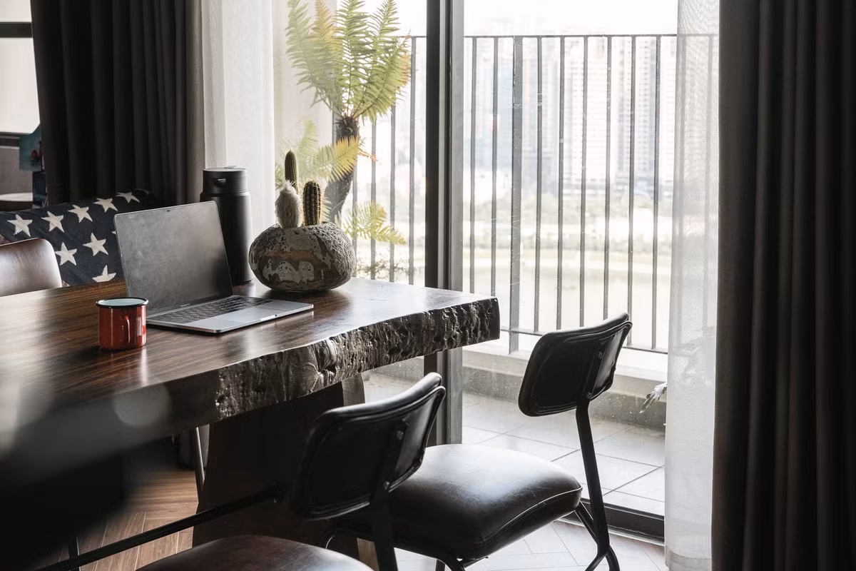 Đây là chiếc bàn ăn được làm bằng gỗ me tây nguyên tấm. Dưới bàn tay lành nghề của các nghệ nhân, nó đã được xử lý để khoác lên mình một diện mạo mới giàu cảm xúc mang đậm màu thời gian. Khoa học đã chứng minh rằng thông qua quá trình tiếp xúc với những bề mặt vật liệu tự nhiên ưa thích, cơ thể con người sẽ tự động kích hoạt oxytocin - một loại hormone cảm xúc giúp giảm lo lắng, căng thẳng, tác động trực tiếp đến tinh thần thông qua mội trường xung quanh. Sự xuất hiện của các vật dụng mang tính cá nhân đóng vai trò cực kỳ quan trọng trong việc chăm sóc sức khoẻ tinh thần.