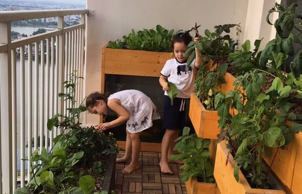 | Là người yêu thiên nhiên, hoa lá nên ca sĩ Hồng Nhung luôn chọn sống trong những ngôi nhà rợp bóng cây xanh. Từ khi có con, cô lại truyền tình yêu này cho các thiên thần nhỏ của mình. Dịp cuối tuần, cô thường xuyên đưa hai bé Tôm - Tép đến những nhà vườn để học cách trồng rau, thu hoạch quả. Gần đây, cô còn "đầu tư" thêm cho hai con một hệ thống trồng rau, nuôi cá khép kín kết hợp với hình thức thổ canh đã thực hiện trước đây. |