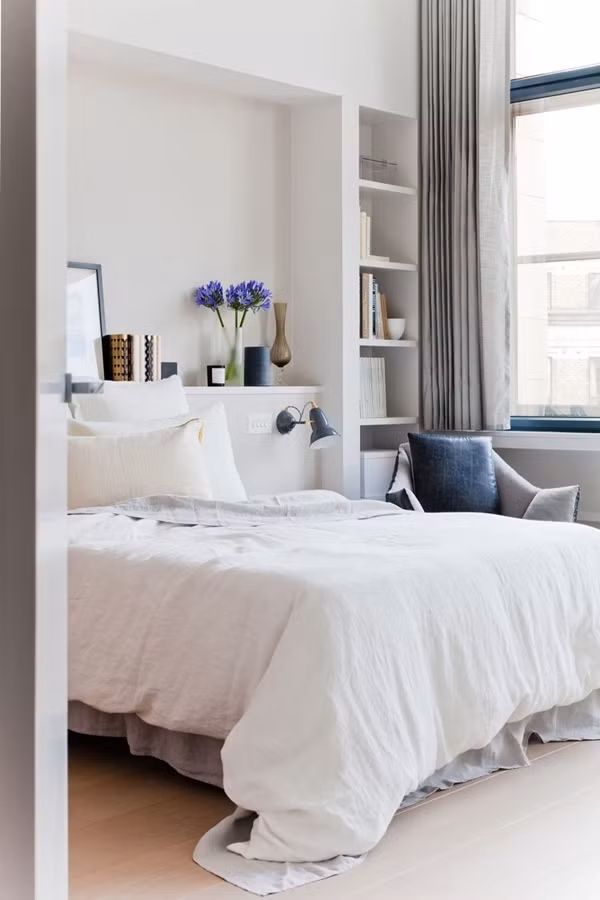 Khu vực ngủ nghỉ của cả gia đình được bố trí ở một căn phòng không quá rộng nhưng đủ để tạo nên sự riêng tư cần thiết. Với nội thất đơn giản, màu sắc hài hòa giúp cho góc nhỏ nghỉ ngơi thêm thoải mái và dễ chịu.