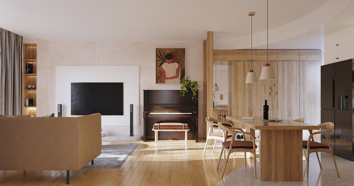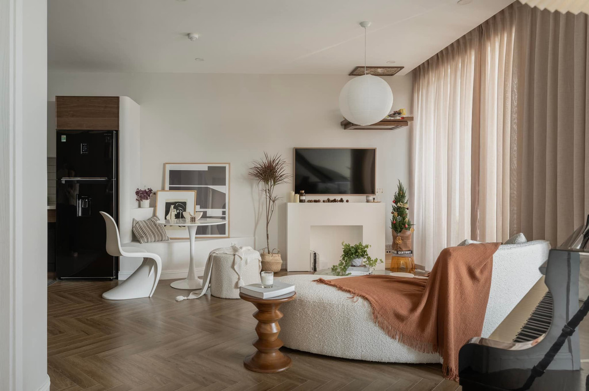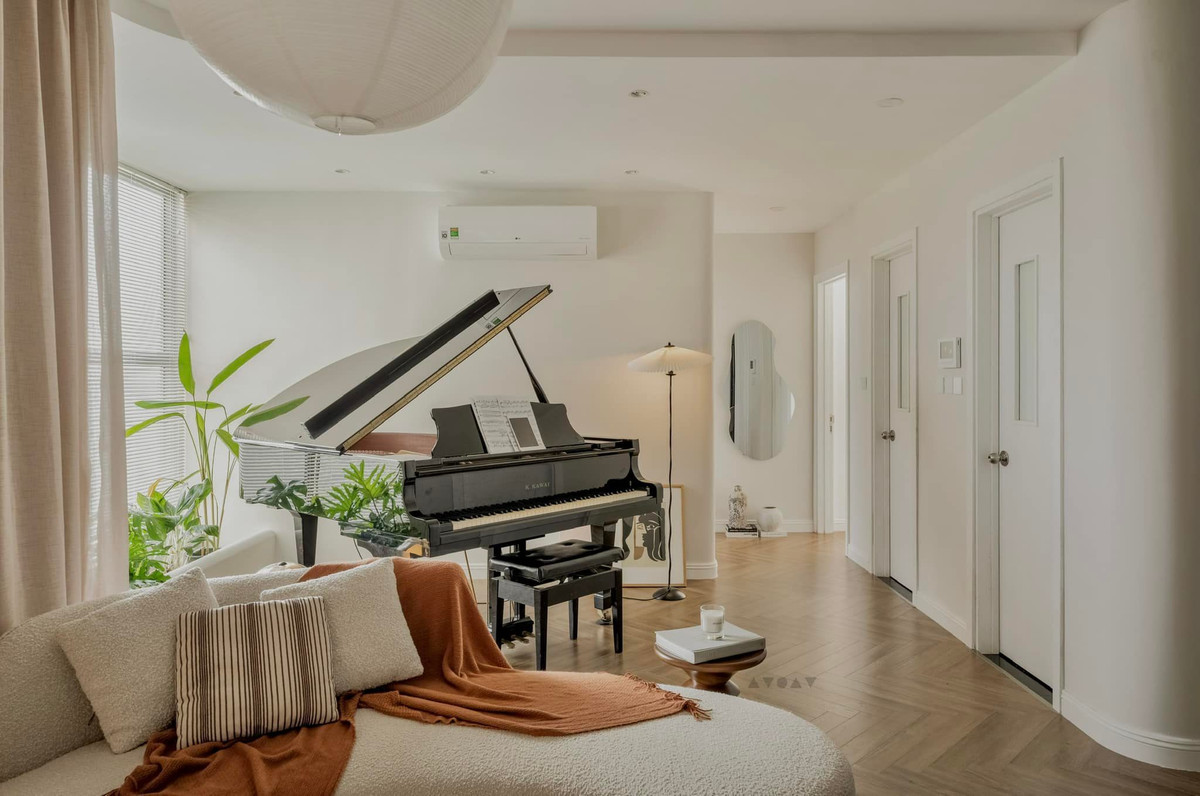 Căn hộ không quá lớn được kết hợp phong cách tối giản cùng với gam màu sáng nhẹ nhàng, tạo đủ không gian và ánh sáng để có thể kê một chiếc dương cầm vào trong nhà.
