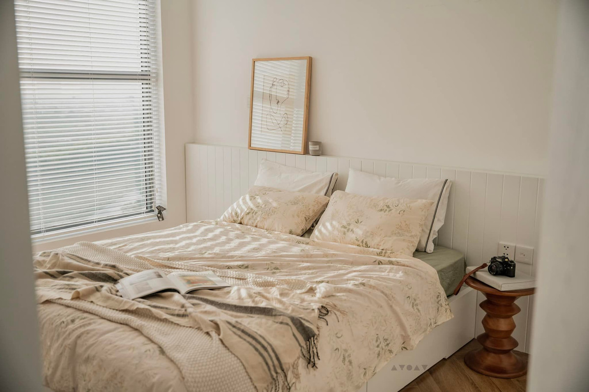 Chiếc giường mềm mại, ấm áp và nhiều ánh sáng.