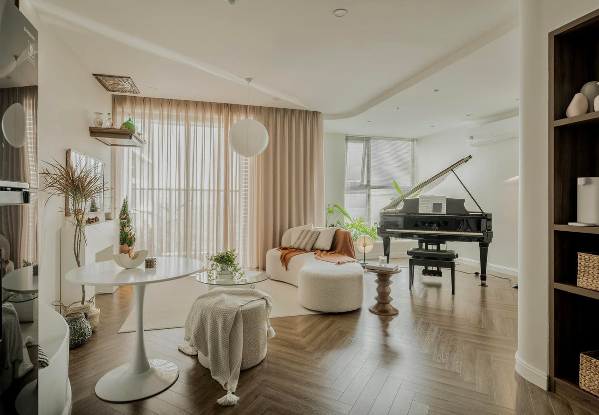 Căn hộ nằm ở khu Mỹ Đình (Hà Nội) của chị Phan Diệu Linh – một nữ giảng viên piano ở Học viện âm nhạc Quốc gia Việt Nam.