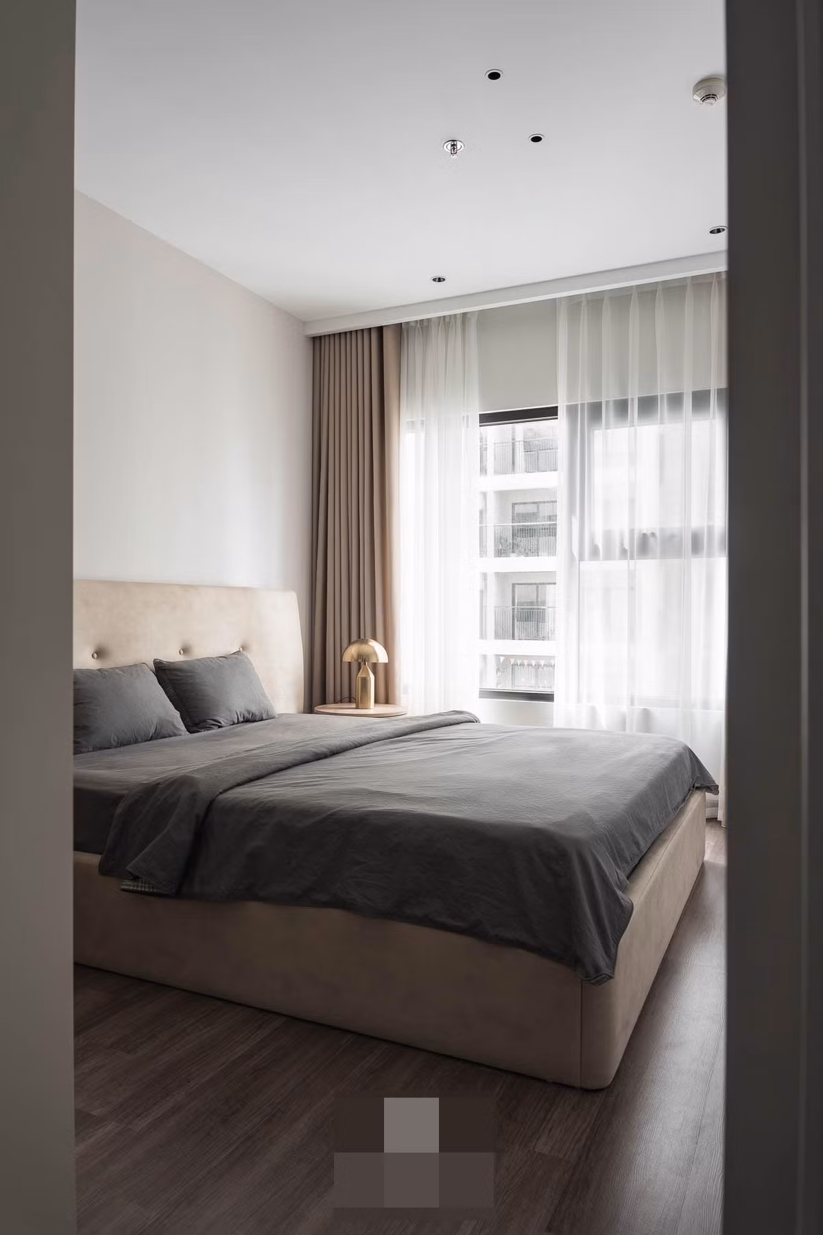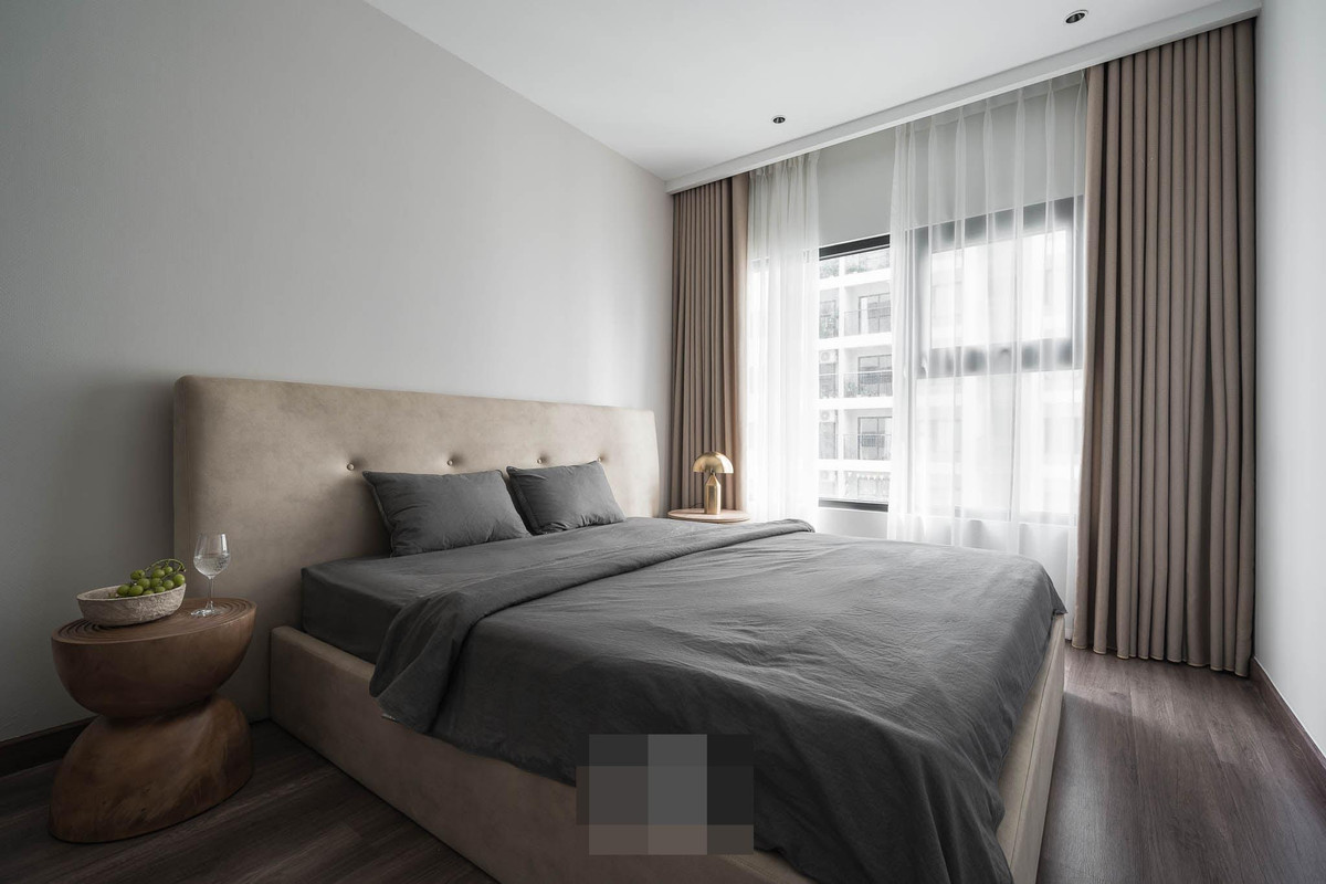 Ban đầu căn hộ 55m2 có 2 phòng ngủ nhưng sau khi trao đổi, nhóm đề xuất làm thành 1 phòng ngủ, 1 phòng thay đồ chỉn chu và nhận được sự đồng thuận của chủ nhà.