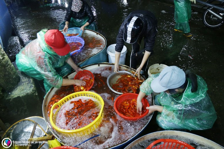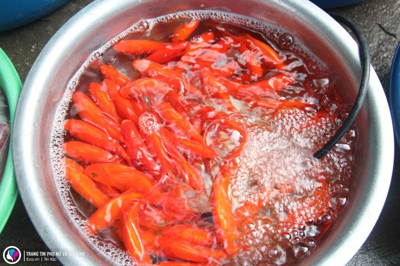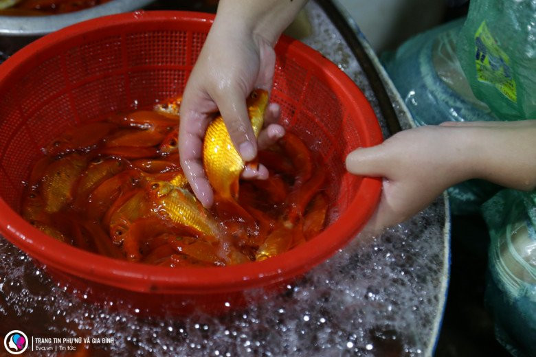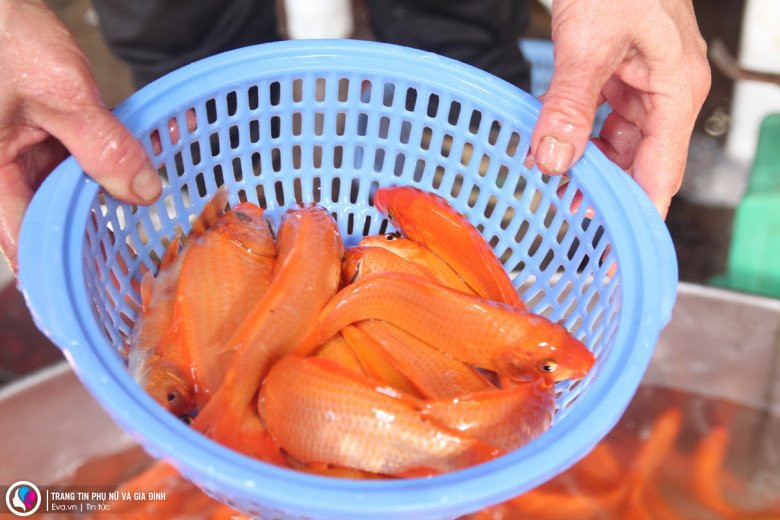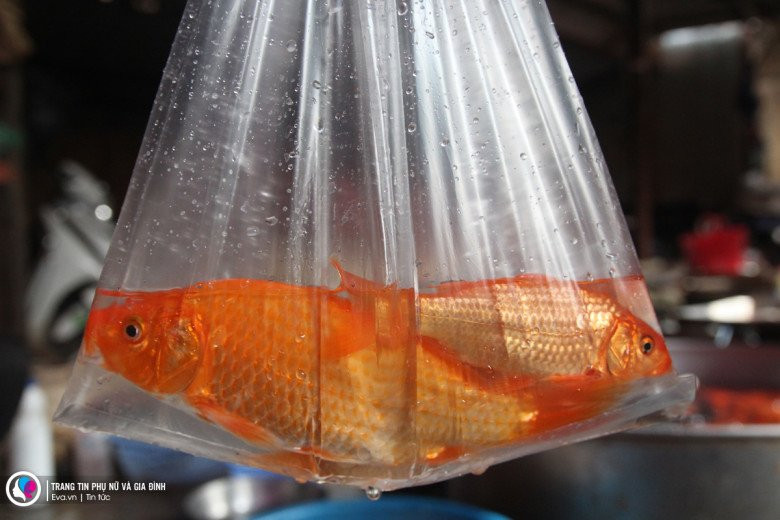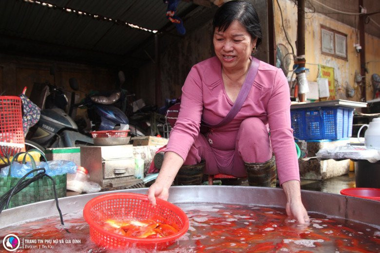 Chỉ vào thùng cá chép mới được chuyển từ vùng nuôi ở Hải Dương lên, bà Hoa cho biết loại cá này chất lượng cao nhất, nếu như năm trước giá khoảng 300.000 đồng/kg thì năm nay tụt xuống chỉ còn 80.000 đồng. Lý giải vì sao giá cá giảm thê thảm, các tiểu thương cho biết do năm nay nguồn cung quá nhiều, hơn nữa nhu cầu mua cá cúng hiện không nhiều như xưa.