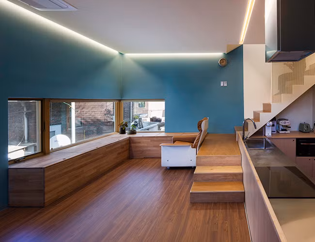 Nằm trong khu phố cổ tại Seoul, ngôi nhà dù chỉ rộng 72 mét vuông nhưng sở hữu thiết kế ấn tượng. Căn nhà nổi bật giữa không gian phố cổ truyền thống có phần chật hẹp. Ngôi nhà bắt mắt hơn với nước sơn trắng kết hợp cùng những lớp gỗ tối giản.