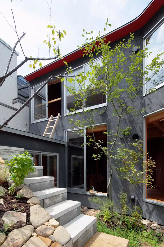 Tọa lạc tại Kawachinagano, Nhật Bản, căn hộ nổi bật giữa khu phố đơn giản nhờ lối thiết kế riêng biệt. Ngôi nhà rộng vỏn vẹn 71 m2 này được tạo nên bởi bàn tay tài hoa của đội ngũ Spacespace, gồm 2 nhà thiết kế chính là Takanori Kagawa và Junko Kishigami.