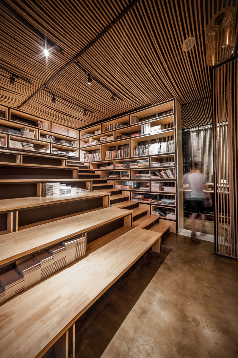Trần nhà dây thừng còn tiếp tục được sử dụng với "cầu thang đọc sách" độc đáo - một "thư viện nhỏ" thân thiện và ấm cúng.