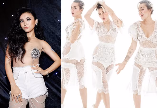 Trong loạt hình mới, Ninh Dương Lan Ngọc lựa chọn thiết kế ôm sát, kết hợp chất liệu mềm và xuyên thấu nhẹ, tôn lên đường nét cơ thể.