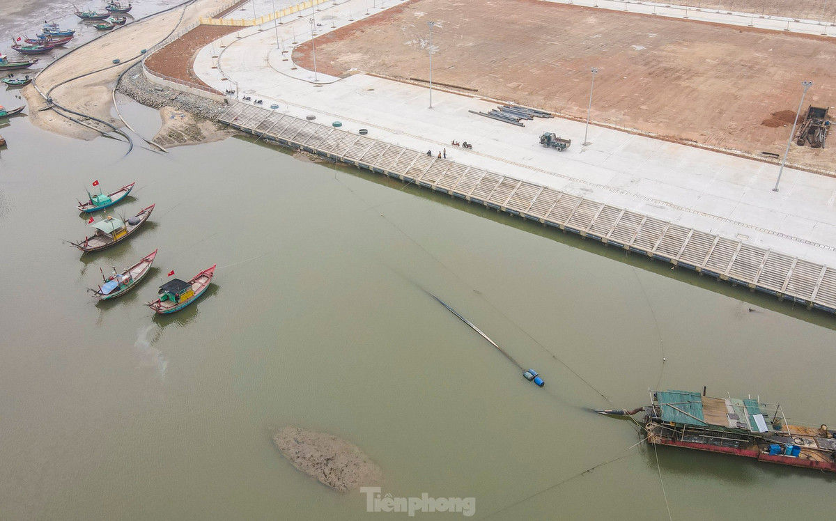 Khu vực cầu cảng sẽ cần hút 225.000 khối cát biển, tạo luồng lạch giúp tàu thuyền ra vào.