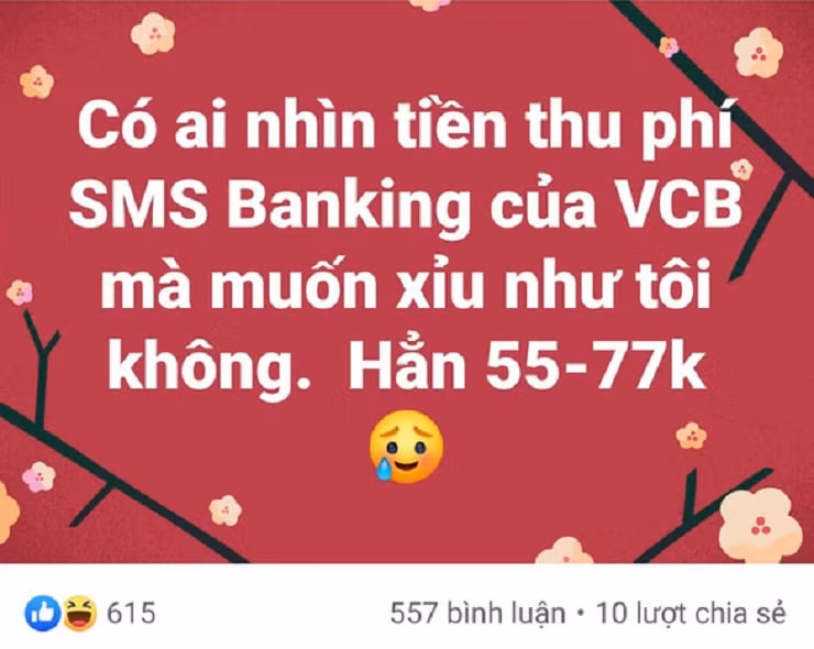 Bất ngờ vì phí tin nhắn, chị Nhung đã đăng dòng trạng thái lên Facebook để chia sẻ cùng mọi người. Ngay sau đó không lâu, có số điện thoại lạ gọi cho chị, xưng là nhân viên ngân hàng Vietcombank và nói sẽ hoàn phí SMS do ngân hàng đã trừ "nhầm".