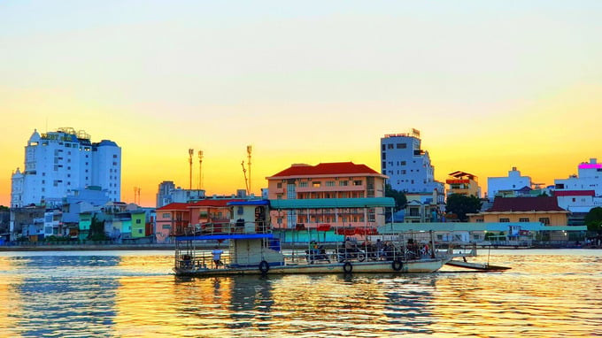 Hoàng hôn làm cho rạch khai luông, quận Ninh Kiều trở nên lung linh hơn.