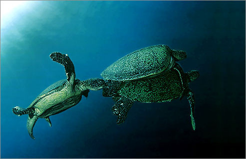 (Kiến Thức) - Rùa biển xanh, ở Việt Nam gọi là đồi mồi dứa, là loài vật khiến con người sửng sốt vì những cuộc "làm tình tập thể" giữa biển khơi.