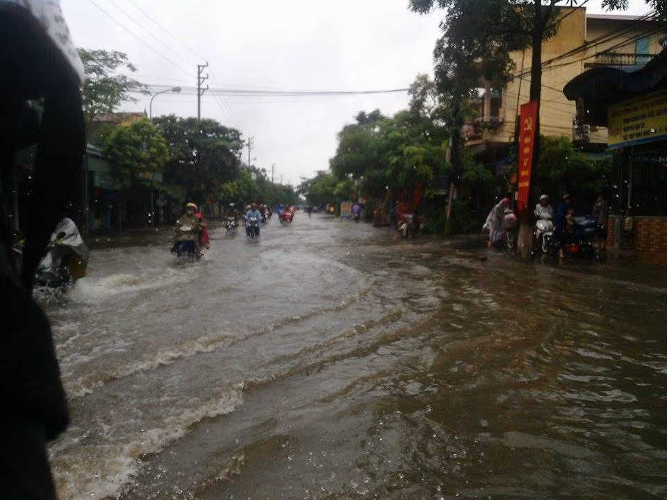 Ghi nhận của PV Kiến Thức tại TP Hải Phòng, nhiều tuyến đường nước dâng cao ngập cả vỉa hè khiến người dân đi lại rất khó khăn.